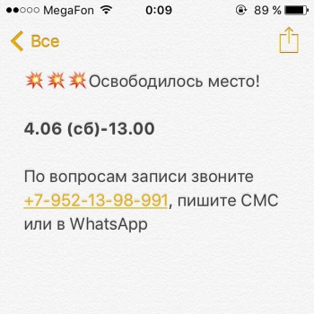 Ближайшее свободное время для записи 08.06 (ср) - 10.00, 13.00, 16.00