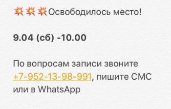 По вопросам записи звоните +7-952-13-98-991, пишите СМС или в WhatsApp, а также можете со мной связаться в вк, моя личная страница https://vk.com/lidasavelyeva