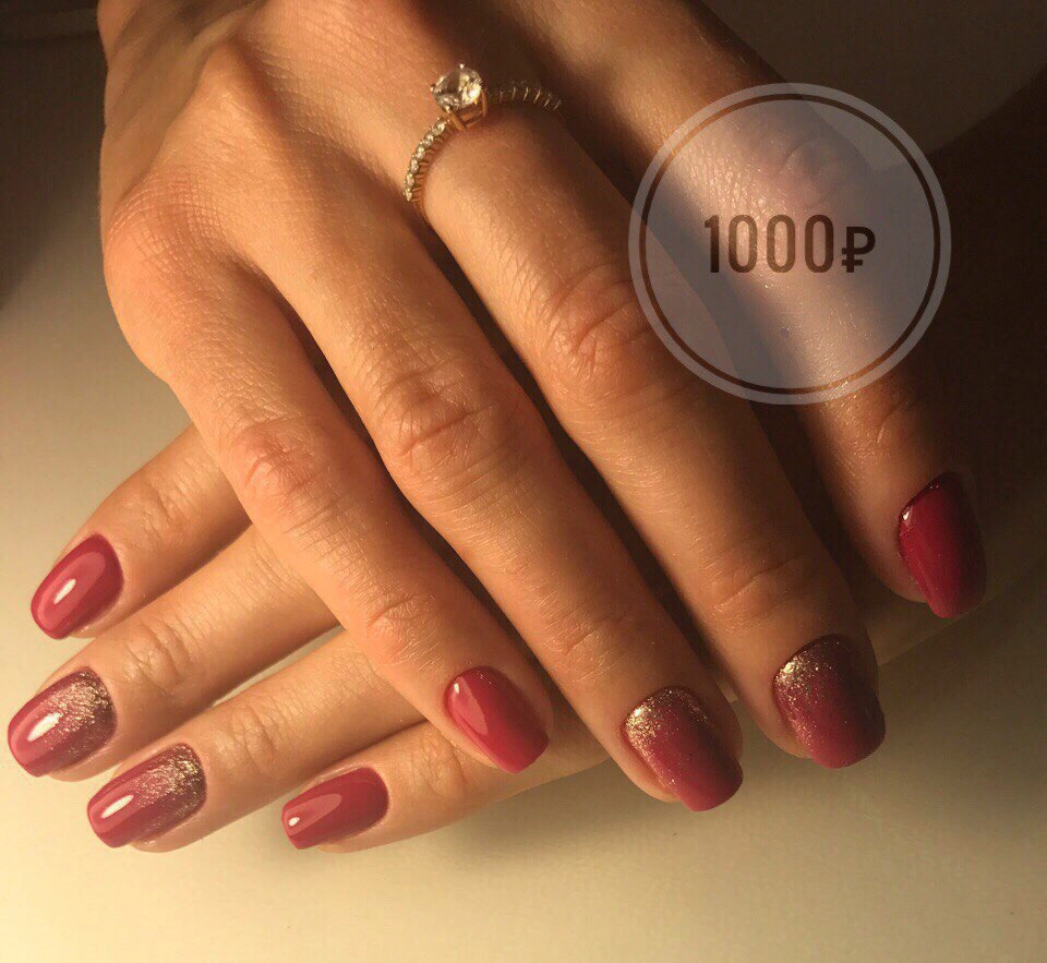 Однотонное покрытие ногтей гель-лаком (в стоимость входит маникюр и выравнивание ногтевой пластины) - 900 рубВСЕГО: 1200руб