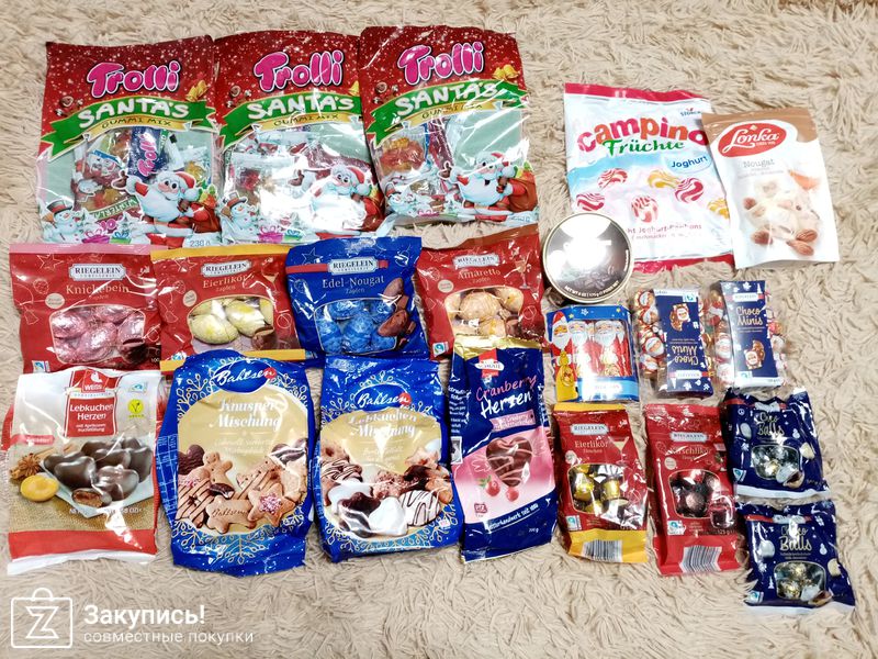 разобрала пока муж отдыхал, ибо почти 4 кг вкусняшек, потом увижу счет за доставку наверное и радость моя станет меньше... А пока аромат шоколада меня бодрит! количество и качество радует! и сознание того, что я готова к нгоду и у меня подарки будут ни как у всех и это главное для меня! что то повторно взяла, что-то впервые, но пряники и конфени с ликером и малютки шоколадки и троллей уже несколько раз, всегда на высоте