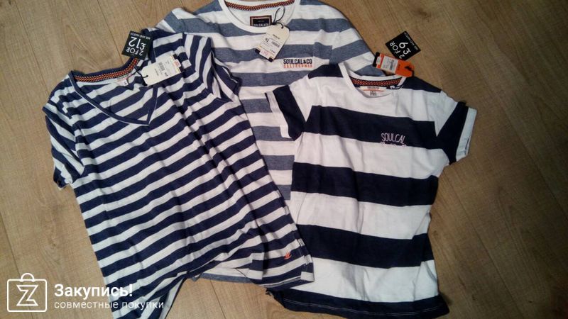 3. дочери: SoulCal Stripe T Shirt Junior Girls арт: 614260, размер: 11-12, вышла 390. Хорошее мягкое качество, швы идеальные.
