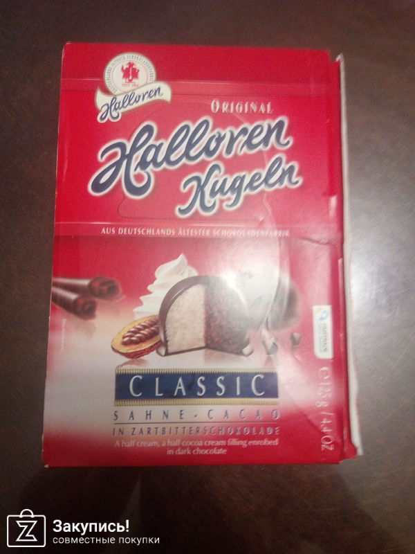 Конфетки Halloren Kugeln. Недорогие такие конфетки, 125 грамм, 12 штучек. Вот что мне в немецких конфетах нравится? Ага, коробочки! Аккуратные такие, маленькие, соответствуют количеству конфет, в них положенных, никакого лишнего картона!