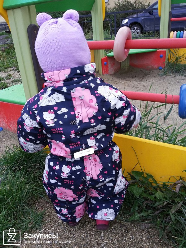 Заказывала деми комбинезон дочке. Розовый особо не любим и хотелось чтоб не маркий был. Ребенок ростом 74см, комбез взяла с запасом на весну 86. Флис на капюшоне и на спинке очень мягкий. Рукава подогнули, за счет утяжки на спине не смотрится широкий.Штрипки можно снять и постирать, очень удобно. Спасибо Анне за бюджетную закупку))