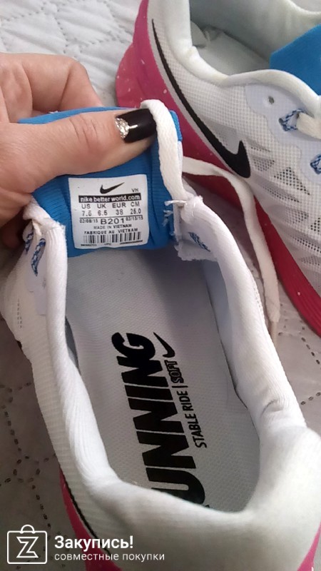 Приобрела в этой закупке кроссовки Найк Нью Баланс, цвет фуксия. Фейк конечно, но качество хорошее. Маломерят на 1 размер. Очень мягкие и комфортные, снимать не хочется. Внутри текстиль, снаружи замша+текстиль. На фото получаются бледнее, чем в реальности.