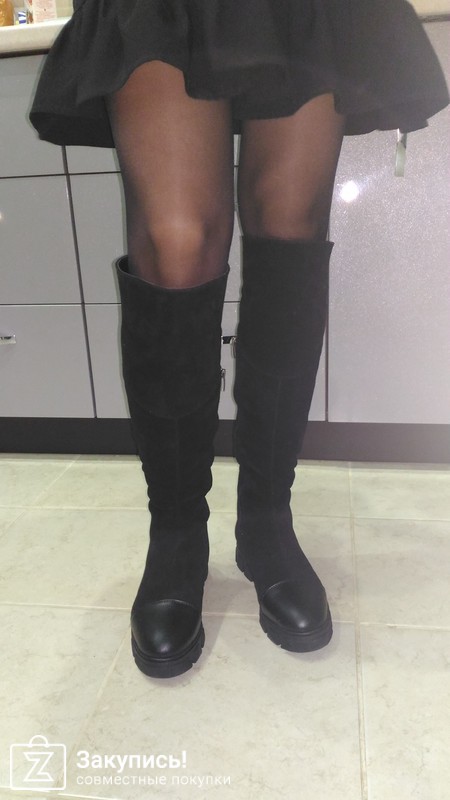 Забыла написать что это зима, меха нет только на колене, около 8 см кожа, если измерять сверху вниз . И еще рост модели на фото) 175см примерно и сапоги ей чуть-чуть прикрывают колено, мой рост 162см и колено сапоги закрывают почти полностью.