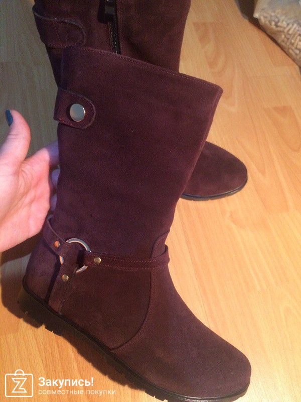 Заказывала зимние сапожки, евроутепление)думаю не замерзну,выше меха баечка,в размер отлично! ноге комфортно и уютно!!жаль фото не передает красоту цвета замши,просто супер!! по мне так немного подкачала подошва видом,дешевит что ли ?)) но всем понравились сапожки очень!