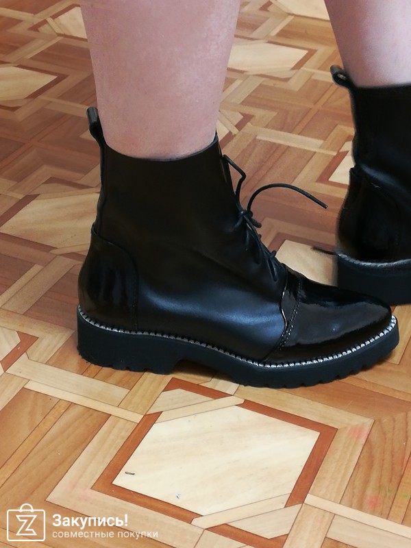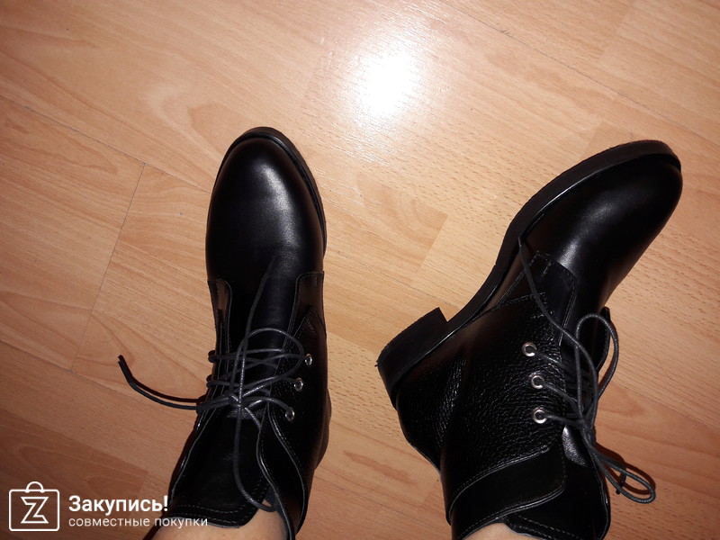 Ботинки очень качественно и аккуратно сделаны. Полностью соответствуют описанию и фото на сайте. Изюминку классической черной паре придает сочетание 2-х типов кожи - гладкой черной и более фактурной кожи \"зерно\". Кожа отличной выделки. Обувка легкая. Подошва мягкая. Шнурки отличного качества (подобные у меня в осенней обувке Эко***ника - не растягиваются и не протираются).