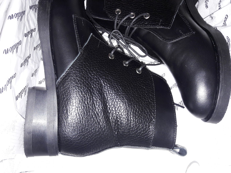 - ботфорты на плоском ходу оказались немножко шире (хотя замеры снаружи показали разницу всего в +2 мм по обхвату голенища у данной пары). Возможно разница ощущается за счет более свободного верха модельки.