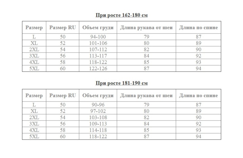 Добрый вечер! Мария, тоже сомневаюсь с размером. Мужская парка Kiro Tokao № 128. У мужа параметры 114-94-106. Рост 183. Носит 52-54 размер. А тут аж 56 по таблице. И ещё, если можно, узнайте, пожалуйста про ширину рукава. У него руки раскачанные - в плечах 37,5-38 см обхват, в прошлой куртке Браггарт в рукавах было тесновато, хотя там была зимняя.