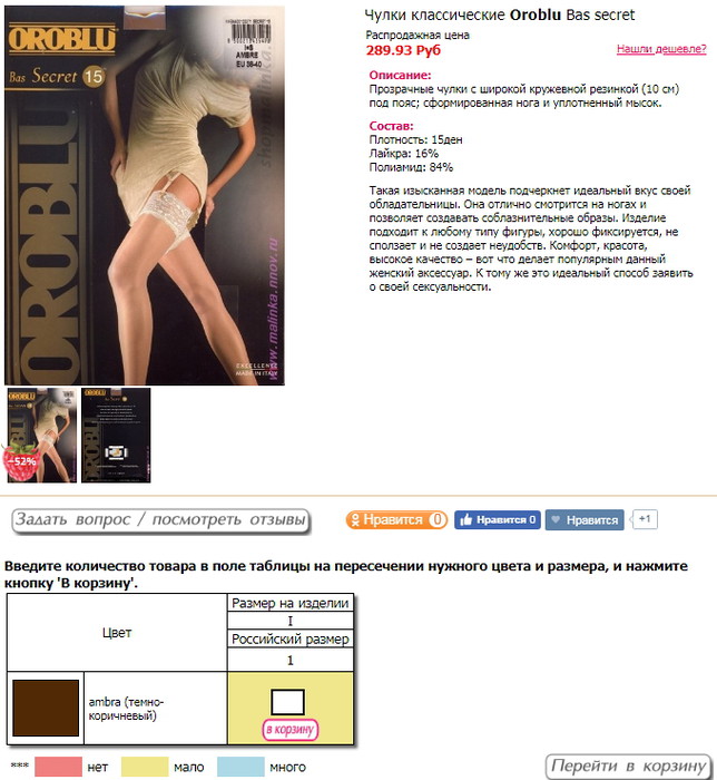 Добрый день, хотелось бы заказать чулки Oroblu, но не могу онять с цветом и с наличием. Подскажите пожалуйста. Нужны классические 20 ден чулки бежевого и черного цвета