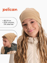 Тёплая вязаная шапка бежевого цвета для девочки. На отвороте прикреплена нашивка с названием бренда CUBBY.