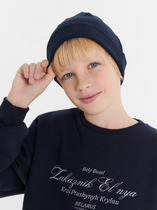 Детская двойная шапка, декорирована стильной нашивкой. Утепление флисом в области ушей. Отлично подойдёт для холодной зимы.— Описание у На сайте поставщика