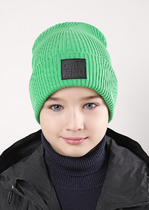 Детская шапка на кашкорсе с отворотом. Декорирована стильной нашивкой.Идеальный вариант на осень, весну.— Описание у На сайте поставщика