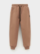 Базовые брюки без карманов, по низу удобные манжеты из кашкорсе. Модель из футера с лайкрой. Пояс регулируется шнуром.