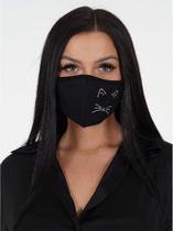 Повязка для лица со стразами кошка черный