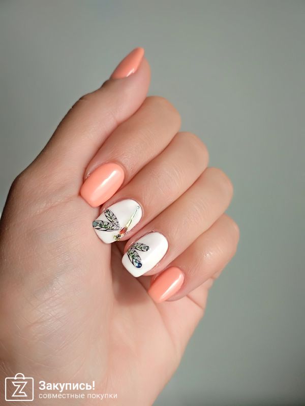 Следующие слайдеры наносила уже на декоративный лак. Получилось их закрепить, было непривычно, так как большой цветок очень выпирал на ногте, и я боялась, что все отвалится)) Но через пару дней неудобства исчезли - а красота осталась)
