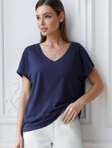 Свободная футболка с V-вырезом и цельнокроеным рукавом из 100% хлопка