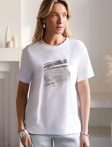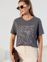Нарядная футболка с принтом пайетками из премиального хлопка с эластаном