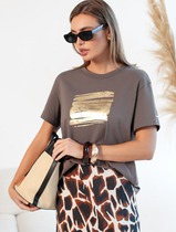 Нарядная футболка с принтом фольгой из премиального хлопка с эластаном