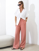 Прямые трикотажные брюки на резинке из футера двухнитки эластичные