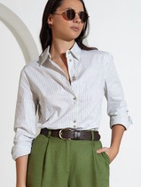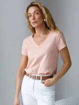 Футболка в полоску с V-вырезом и цельнокроеным рукавом из премиального хлопка