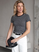 Футболка облегающая в тонкую черно-белую полоску из премиального хлопка с эласта