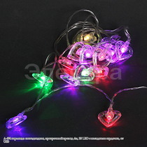 A-474 гирлянда светодиодная, прозрачный провод 4м, 20 LED с насадками "сердечко"