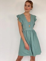 S4221 МИНИ-ПЛАТЬЕ С КВАДРАТНЫМ ДЕКОЛЬТЕ ФИСТАШКОВОЕ