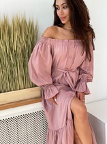 4359 ПЛАТЬЕ С ОТКРЫТЫМИ ПЛЕЧАМИ ПУДРОВОЕ