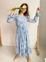 M2975 ПЛАТЬЕ ГОЛУБОЕ С УЗОРОМ (БЕСТСЕЛЛЕР)
