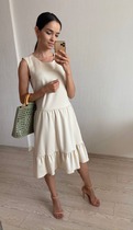 S1702 ПЛАТЬЕ С ВОЛАНОМ ИЗ ТКАНИ В БЕЖЕВУЮ ЁЛОЧКУ