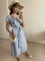 S1712 ПЛАТЬЕ С ПУГОВИЦАМИ ИЗ ПОЛОСАТОГО ЛЬНА