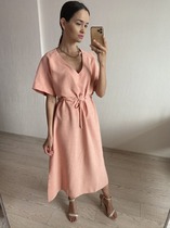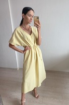 S1756 ПЛАТЬЕ ИЗ ЛИМОННОГО ЛЬНА СВОБОДНОГО СИЛУЭТА