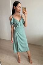 S1686 ПЛАТЬЕ ИЗ ХЛОПКА В ГОРОХ (ОЛИВКА)