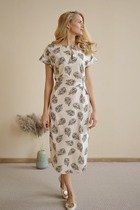 S1521 ПЛАТЬЕ С ВЫРЕЗОМ С ФЛОРИСТИЧЕСКИМ ПРИНТОМ (ЛИСТЬЯ)
