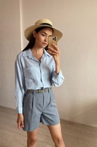 S1711 ШОРТЫ ИСКУССТВЕННЫЙ ЛЁН В ПОЛОСКУ