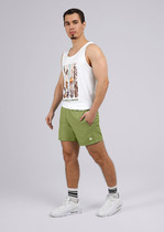 Шорты с боковыми карманами, по поясу барабан, декорированы отстрочкой.
