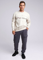 Брюки на манжетах с отрезным поясом из кашкорсе, двумя карманами в боковых швах.— Описание у На сайте поставщика