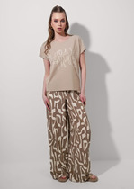 Брюки широкие из трикотажного полотна с блеском. По талии притачной пояс с внутренней резинкой и шлевками.— Описание у На сайте поставщика