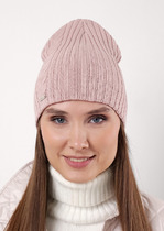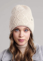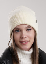 Шапка двойная женская с отворотом, декорирована нашивкой логотип.— Описание у На сайте поставщика