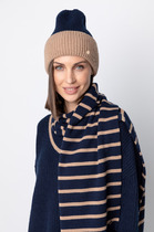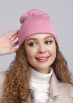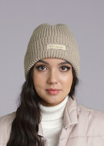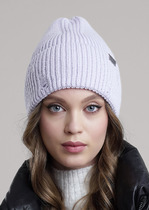 Женская двойная шапка, декорирована нашивкой логотип. Отлично подойдёт для зимы.