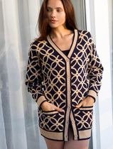 Vilatte Кардиган двуслойной жаккардовой вязки с кашемиром D31.130 синий-бежевый
