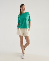 Boyfriend крой, укрепление по горловине спинки, круглый вырез. Горловина рибана. Отстрочка по горловине переда— Описание у На сайте поставщика