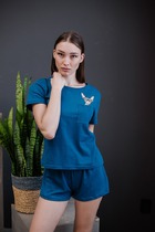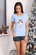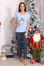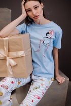 Женская пижама ЖП 024 (T) (Голубой_полоса с принтом)