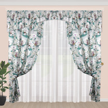 Роскошный комплект из тканей-компаньонов имеет множество вариантов вывешивания.Различные варианты оформления окна можно посмотреть на маленьких фото под основным.В комплекте 2 шторы из принтованной вуали и 4 шторы из однотонной вуали и два подхвата.