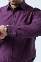 Рубашка прямого силуэта бордового цвета в микрополоску с длинным рукавом.