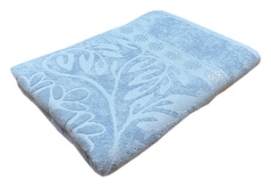Покрывало махровое ВЫБИТЫЕ ЛИСТЬЯ - голубой р-р 150х200