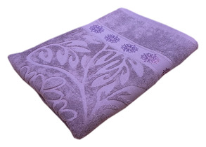 Покрывало махровое ВЫБИТЫЕ ЛИСТЬЯ - баклажан р-р 150х200