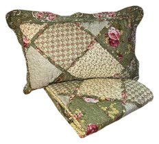 Покрывало пэчворк с наволочками РОЗЫ НА ОЛИВКОВОМ