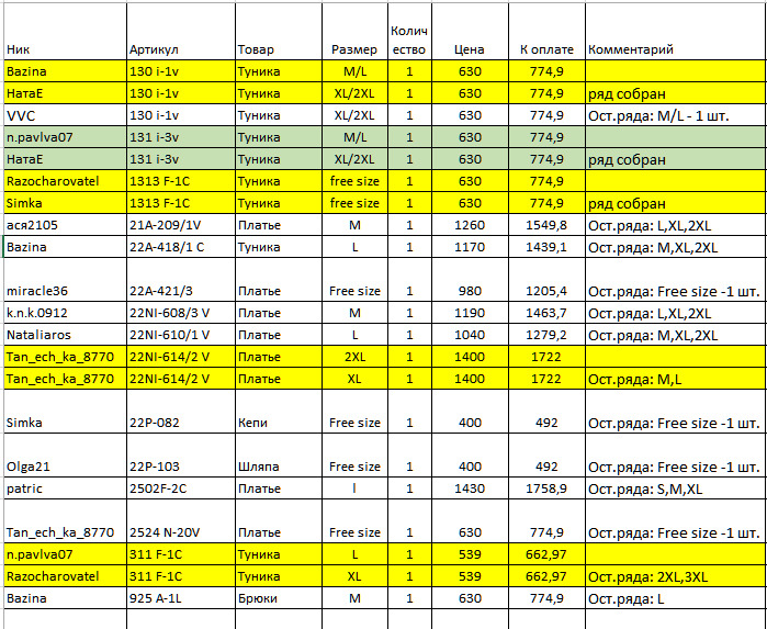 На сегодня - результаты в таблице. Пока только 3 рядочка собрали. В таблице в последнем столбце - размеры. которые нужно дособрать для выкупа ряда! Цены актуальные, снижены! На 9 и 10 странице - фото по артикулам из таблицы.